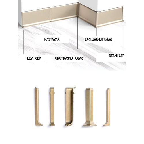 Spoljašnji ugao za cokla profil DC-80 / zlato mat